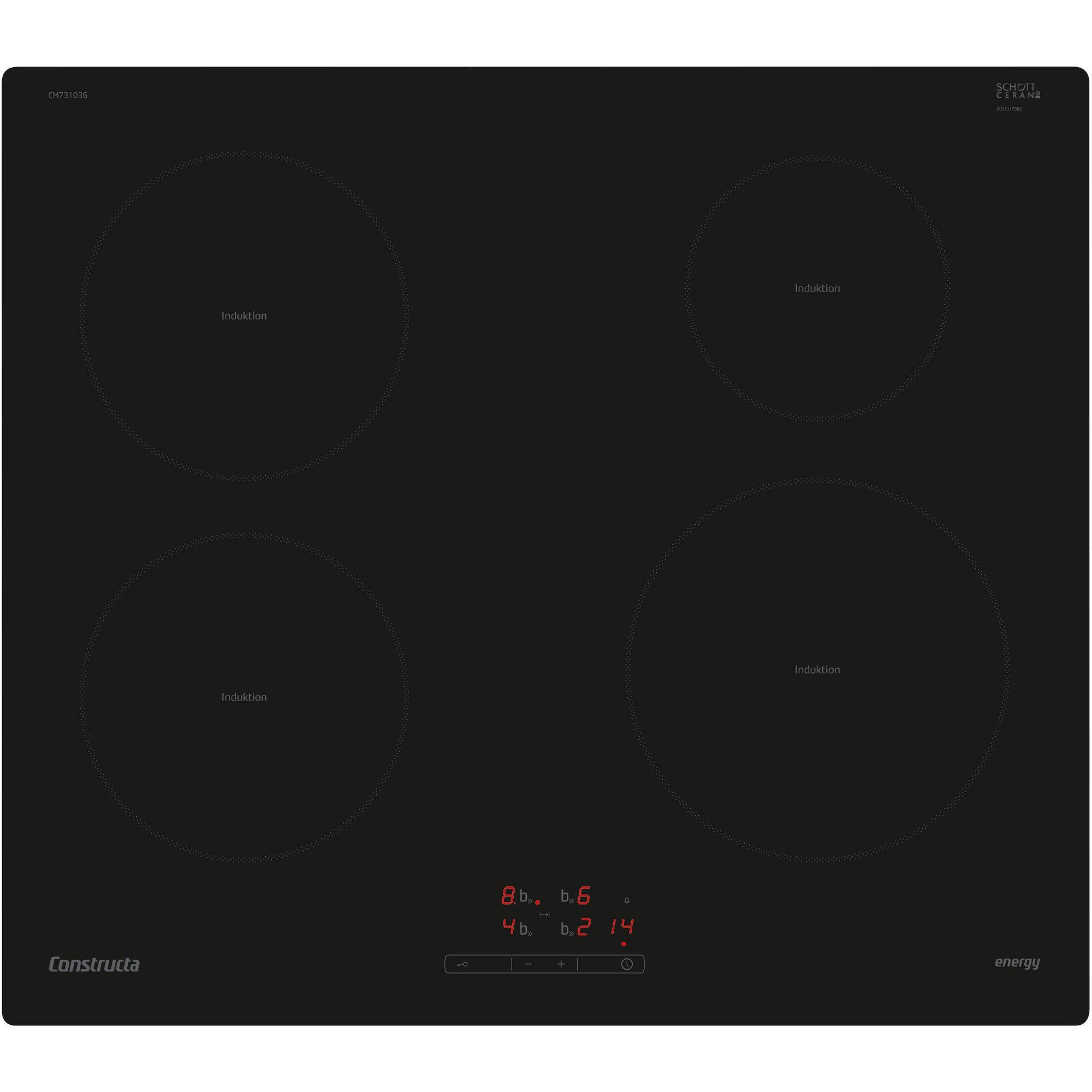 Induktionskochfeld: herdgesteuert, Schwarz, Rahmenlos aufliegend, 17 Leistungsstufen