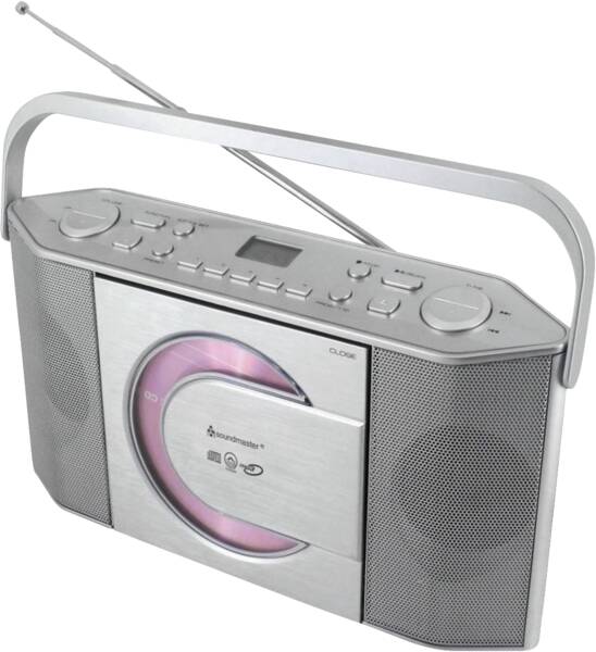 Kofferradio, Stereo, Synthesizer-Tuner (PLL), 10 Senderspeicher, 5 Senderspeichertasten, Empfang UKW, integrierter CD-Player, CD-R/-RW Wiedergabe, MP3-Wiedergabe